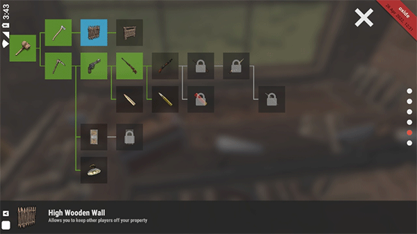2、点击右上角背包可以打开背包,同时可以查看制造和可制造列表,以及你的穿装信息,我们可以用手指拖动将背包里的东西拖到屏幕正下方的腰带上,点击不同的物品来切换腰带上的激活物品,以便使用物品。