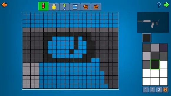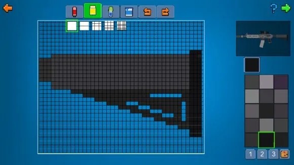进入后,不要急着开始画,先规划好大概位置,防止空间不足导致缩水,或者枪械像素过低不美观
