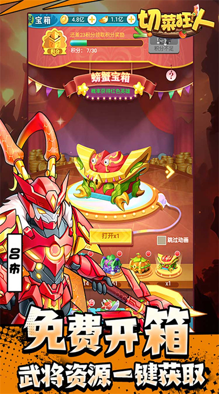 切菜狂人游戏是一款Q版的拟人画风休闲扮演类型挂机游戏,在这款游戏之中你将会成为一位绝世食神,通过指挥手底下的蔬菜大军和不同的怪物展开一系列的战斗,培养成为一个最为顶尖的食神。切菜狂人游戏之中具有相当多种多样的蔬菜等待你的选择,自由的进行一系列的搭配组合,打造出一个无比独特的蔬菜世界,成为最厉害的蔬菜达人,完成属于你的蔬菜霸业,夺回属于自己的厨房吧。