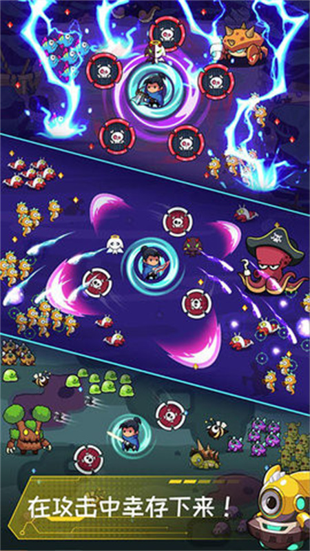 7、战斗中不断选择并升级新的技能,有些技能还能进行组合,触发强大的攻击效果,帮助玩家快速清理敌人。
