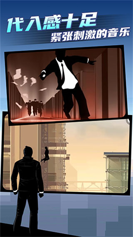剪影效果拉满,感受未来科技感的跑酷,随机的关卡带来刺激的游戏感受,各种动作自由选择,避开障碍物,使用道具,让自己能够跑的更远,还有各种的动作精准利落,游戏内的BGM也非常的应景,中文界面非常贴心。