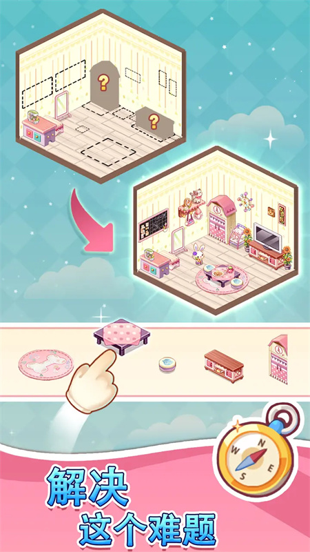 4、还可以使用提示按钮获取布置方向,帮助你更轻松地完成房间装饰。