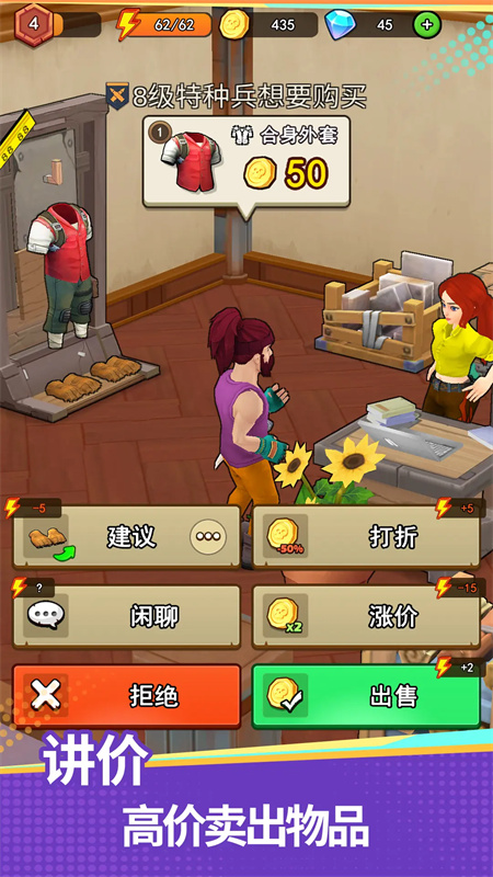 地下城里开商店是一款开店玩法的3D模拟经营类手机游戏,玩家将以铁匠的身份在地下城开设店铺,从一个破败的小作坊开始通过收集图纸、锻造装备并在店铺内贩卖武器等方式经营发展,还可组建佣兵团前去扫荡副本,获取更加稀有的材料图纸,在地下城打造属于玩家自己的商业帝国。地下城里开商店除了传统模拟经营玩法外,还提供了交易拍卖行功能,允许玩家之间交易珍稀装备来获取更多的报酬,喜欢模拟经营类手游的玩家不容错过,赶紧下载游戏体验吧!