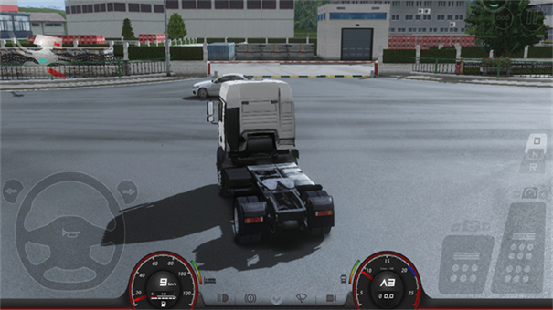 2、点击右上角菜单,点击左侧钥匙图标启动卡车,即可开始按踏板操作,坐标为方向盘,右侧为刹车和油门,油门上方为前进和倒挡;