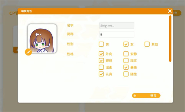 2、接着你可以自定义CP角色的外观服饰,并取名;