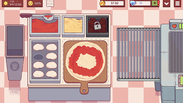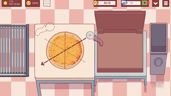 可口的比萨游戏之中你将会在每一个订单完成的时候得到金币的奖励,通过不断地升级自己的披萨设备来一步步地成为披萨大师吧,自定义自己的店面,让自己的披萨店蒸蒸日上