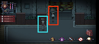 然后在初始地点先直走,可以看见两个女学生。白色框框起来那个是毫无用处的,而蓝色框框起来的可以在过了社交判定之后给一条普通线索和一条思考线索。