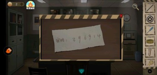 二楼监控室输入密码3728打开门,在桌子上拿到一把起子、一卷胶带,还看到一张密码纸。