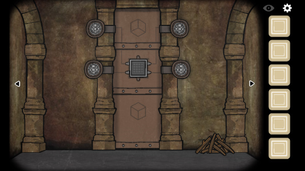 来到对面,完成墙上的解谜(根据石墩上的图形,将柜子上对应的图形移到石墩上即可)