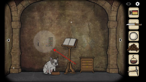 5、游戏的操作方式也比较简单,玩家只需要手指点击屏幕上的箭头和道具就可以完成移动和拾取、查看的动作,右边的道具栏可以存放道具,还有在卡关时准备的提示机制。