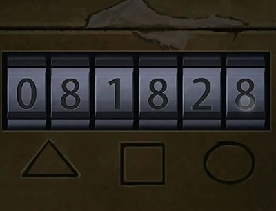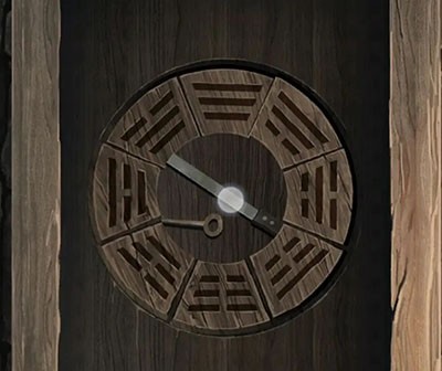 可以自由行动之后先看一下箱子的密码,提示是人头——纸人,花圈,马,小房子,注意这个小房子是有一个门和一个窗子的,所以我们观察纸房子时候找一下只有2楼的左右两边和3楼的右边满足,所以房子是3,然后数一下纸人8或9个,花圈3个,马1个,所以密码为8313或者9313,最后试一下是8313,打开拿到一张八卦卷轴和第二块八卦牌。