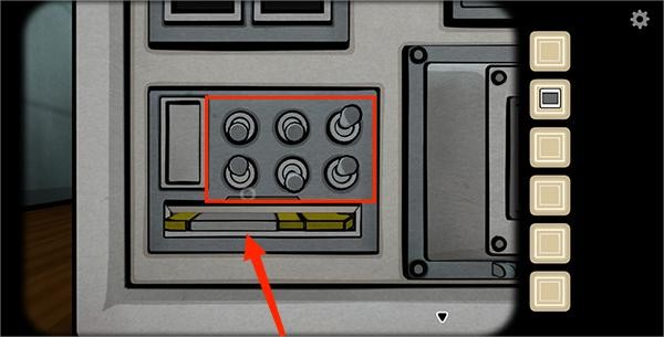 4、然后转向左侧来到另一面,将开关安装到图中亮灯的地方,然后按照过去的线索点击图片