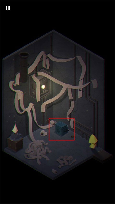 1、游戏的开始就是摩诺用门抵挡外面的攻击,第一关,摩诺在一个类似篮子的地方,需要按住上面的拉杆让自己落到地面上。