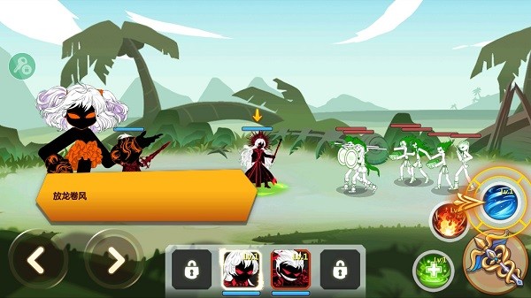 游戏中玩家同时能上阵四名火柴人英雄,点击即可切换。