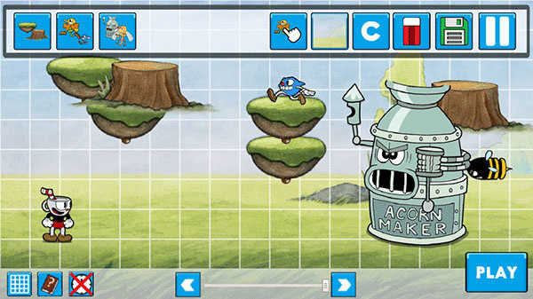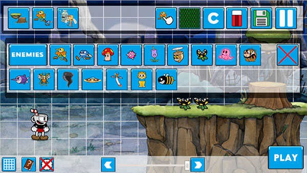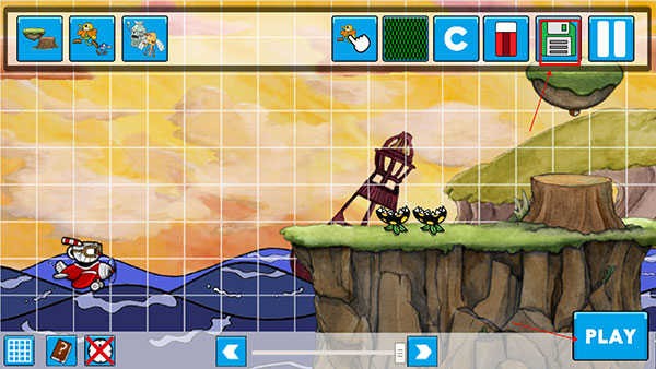 6、完成编辑后,点击倒数第二个保存按钮进行存档,随后按下“play”即可即时测试你的关卡设计。
