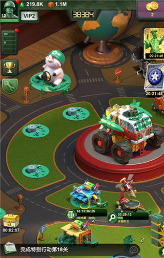 采集玩具资源,发展指挥部基地。联盟指挥部、空军指挥部、坦克营地、科技研究所,打造你的玩具帝国!