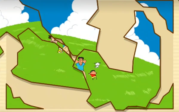 4、然后蜡笔小新就可以开始拼图了,点击拼图碎片移动到合适位置即可。