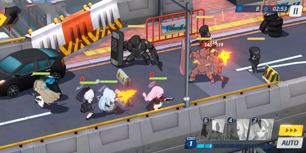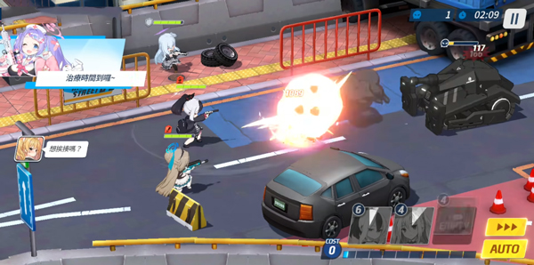 10、进入游戏如图,玩家可手动操纵角色进行攻击,也可点击右下角AUTO自动作战,以及加速进行;