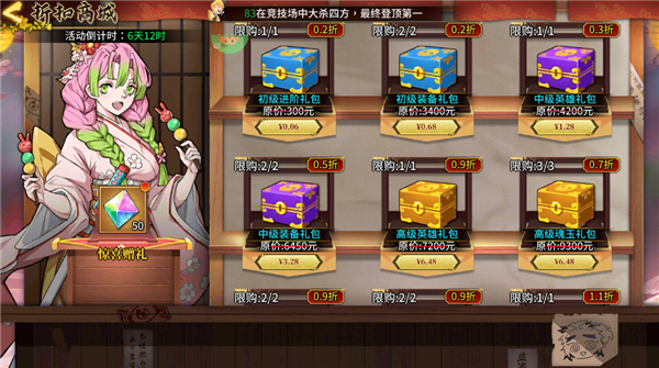 新区钻石优先用于购买主公装备和圣器升星,这是最划算的升战方式。鬼屋进阶石和无限城招募卷不推荐优先买。