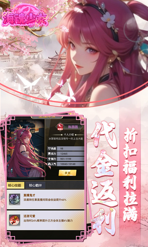 海魂少女0.05折游戏之中你将会结识各种不同的美女,并且为她们创立不同的直播间,进行一系列的直播选修,一步步的进行卡牌养成,直至成为一代商业巨鳄吧!