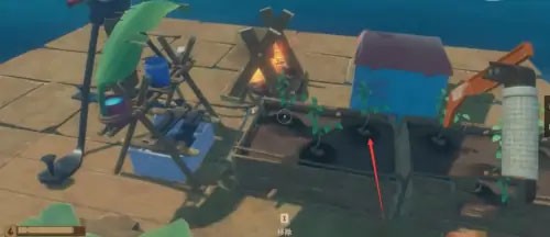 1、首先进入游戏之后,在木筏上准备好生活必需品:淡水收集器,火、床等