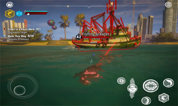 食人鲨完美移植了电脑端同名游戏的所有内容,并以不输于端游版本的画质让玩家可以感受更良好的视觉体验,同时开放世界冒险的玩法结合鲨鱼这一少见的角色题材,让玩家能够切身体会作为鲨鱼称霸海洋的乐趣。