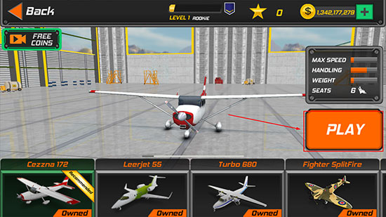 4、选择自己要派出的飞机,然后点击【PLAY】即可进入游戏。