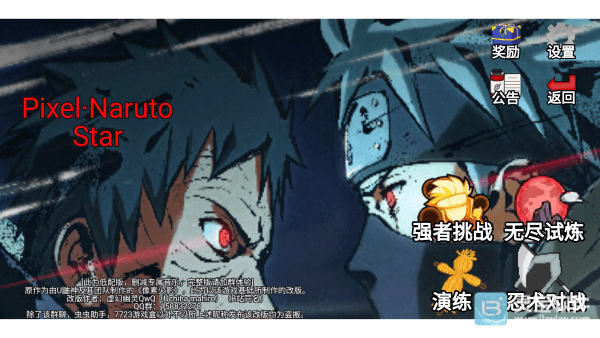 像素火影平衡改是一款像素风格的动作格斗类游戏,游戏中还原了火影忍者的角色建模和技能,独特的技能招式体验不一样的格斗快感,玩家们将控制自己的人物和对方进行战斗,通过释放技能和连招成功的击败对手,每一个角色都非常还原,还有不同的模式可以自由的体验,游戏的地图非常的丰富,利用好场景的优势打出不俗的伤害,通过释放技能和召唤灵兽给对手造成伤害。