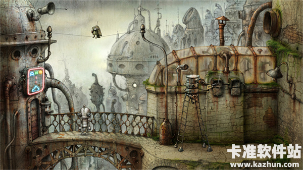 6、细腻的手绘风格打造后现代机械场景画面,让玩家置身在这部充满后现代机械情调的游戏中时,俨然彷佛随着主人公一同冒险,一同前进。