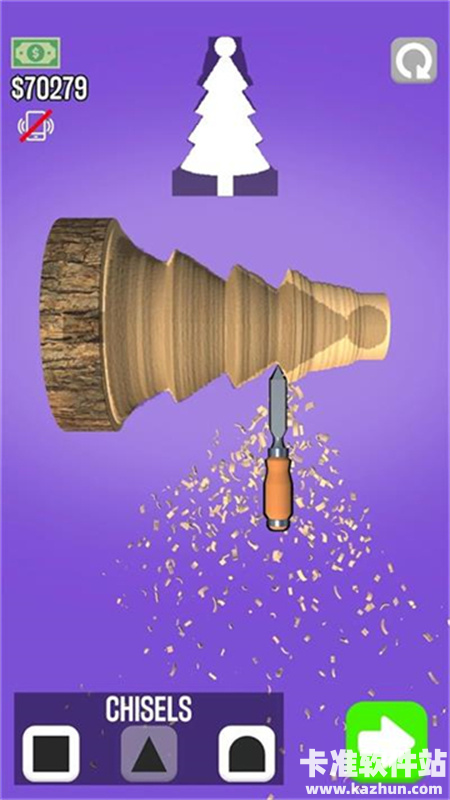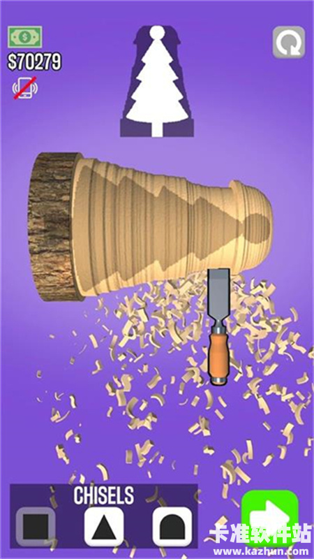 3、丰富的关卡挑战,每一关都有不同的要求,你也可以自由的发挥,进行削木头