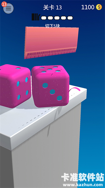 玩家通过滑动屏幕来控制刀具的移动,目标是将物品切割成小块;在切割的过程中,玩家需要注意避开障碍物,否则可能会切割失败;