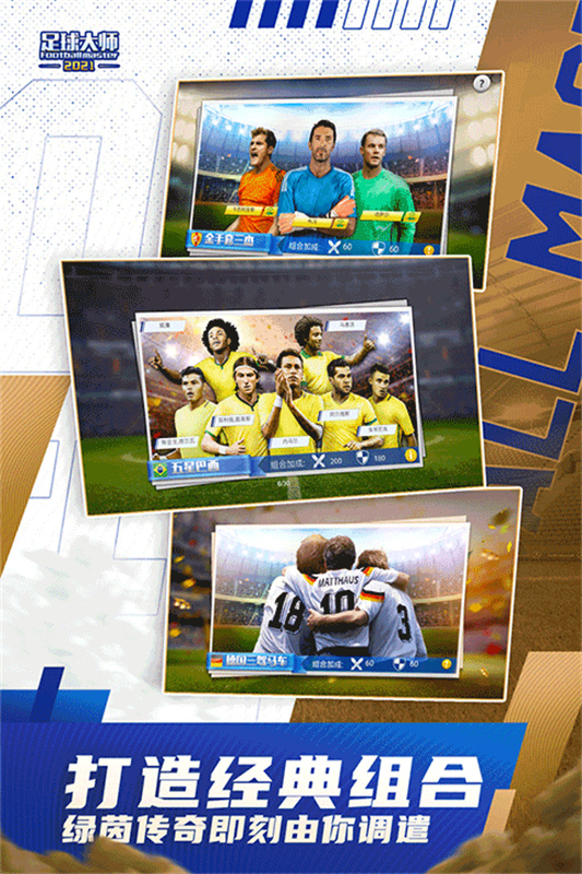 3、大师联赛:玩家将参与到欧洲顶级联赛的争夺中,更有机会获得欧冠和欧联奖杯等终极荣誉。
