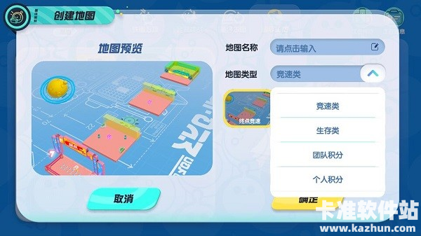 ▲地图类型:分类下可以选择各种模板,包含竞速赛、生存赛、积分赛等模式,操作简单,不怕无从下手!