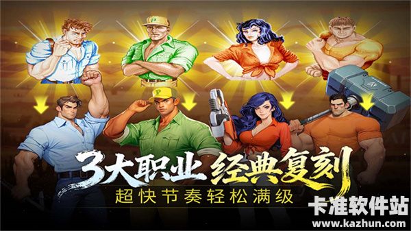 游戏内设立三大职业可供选择格斗家(近战拳术)、神枪手(远程枪炮)、机械剑士(近战刀剑),并开放组队功能,最高三人成队,闯关和打本过程中可以获得经验加成和金币加成。职业各具特色技能,应对不同战局!3天轻松满级,快喊上你的街机搭子一起来玩吧,重温当年一币通关之路!