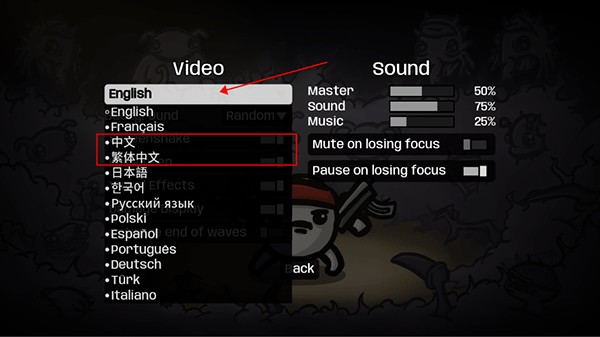 3、点击English那一栏,下方会出现中文选项,点击即可