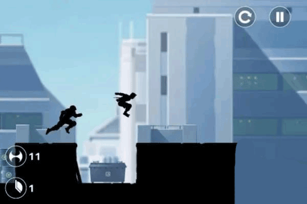 5、游戏将人物弱化成黑色的影子,让你的注意力集中在跑酷上面。
