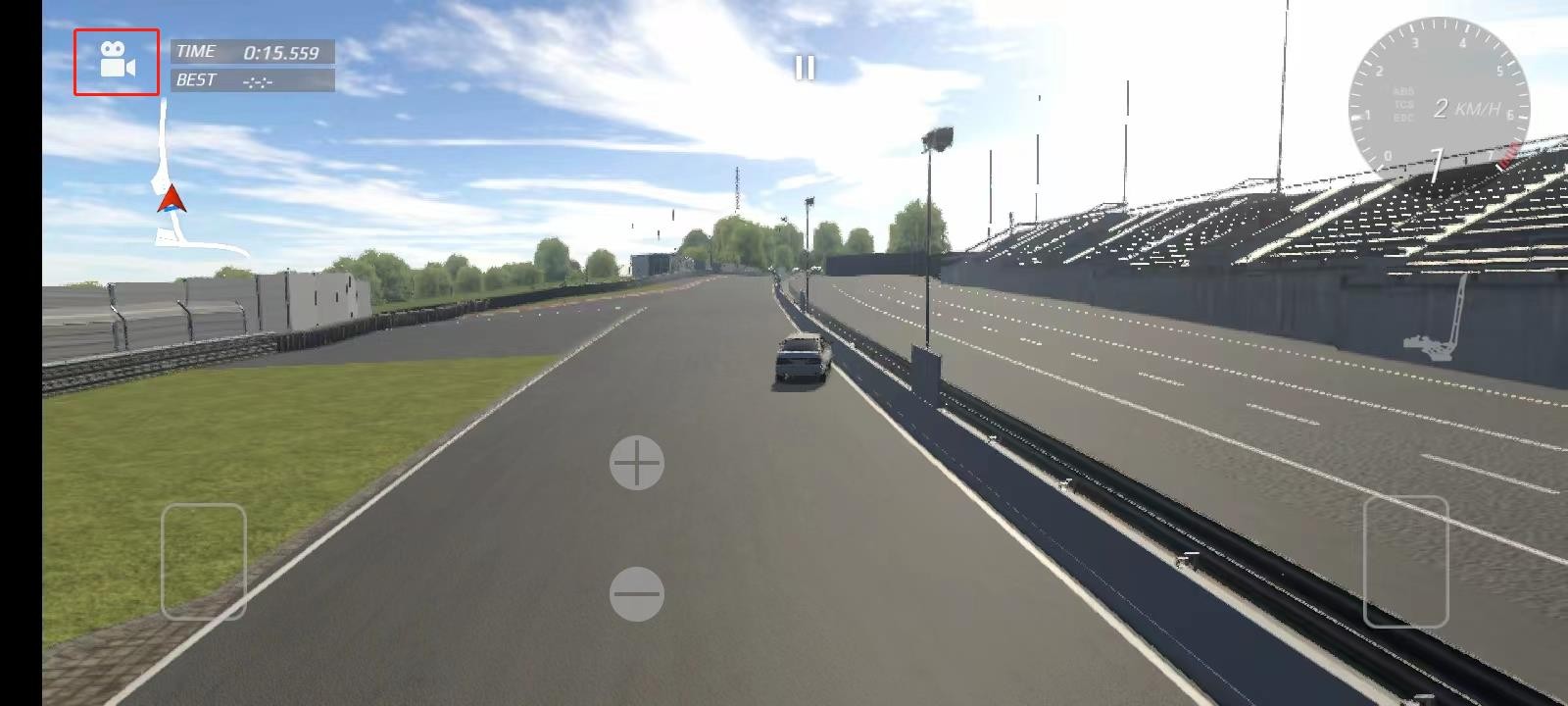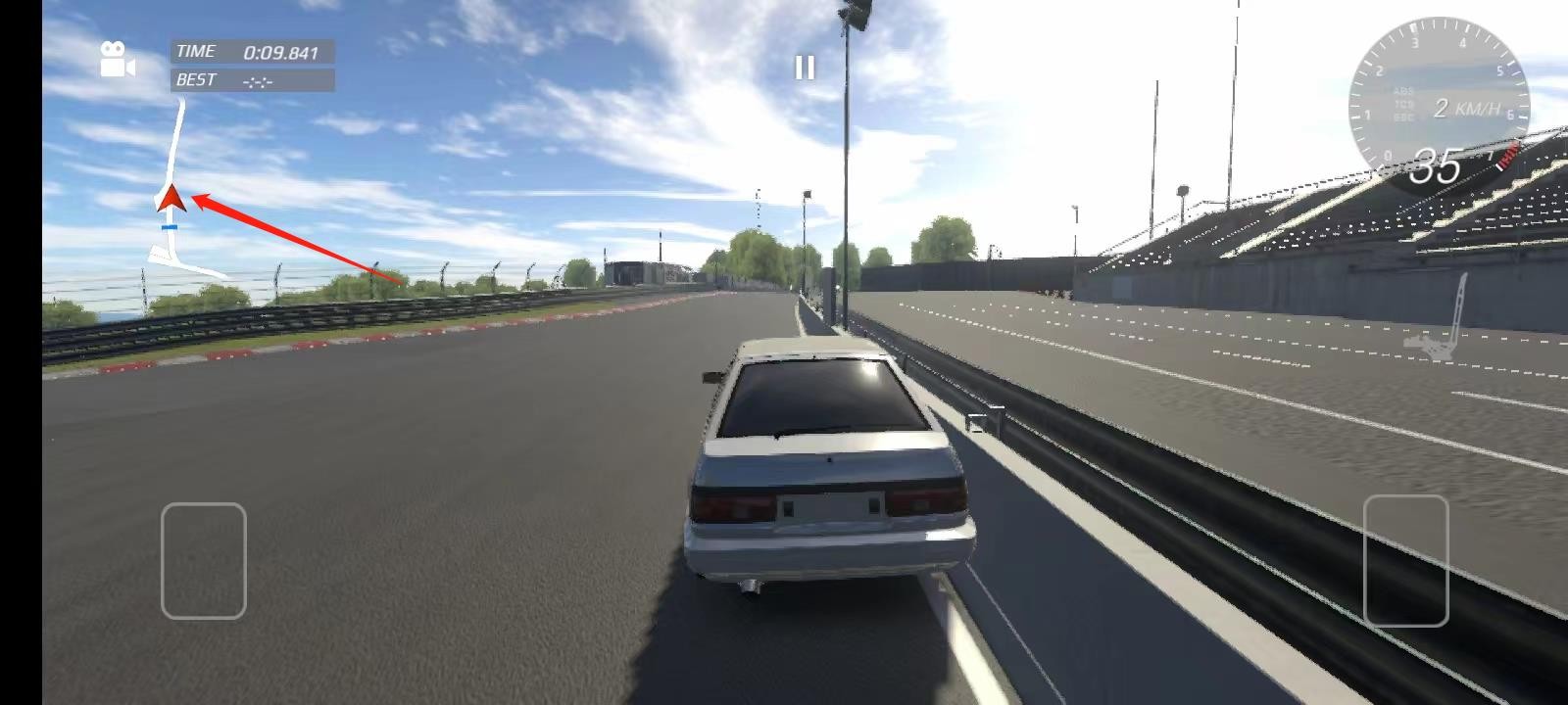 6、进入游戏以后,左边的控键是刹车,右边的话是油门,而左右移动的话需要使用左右倾斜手机,不过这个可以在设置中进行调整。