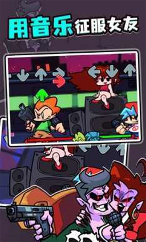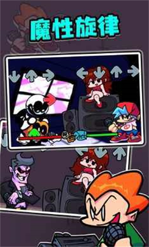 FNF全人物模拟器是一款音乐节奏类游戏,游戏内加入了全人物,玩家们可以选择自己喜欢的角色开始挑战,跟随音乐的节奏来进行敲击,不同的歌曲有着不同的挑战难度,这里有着大量的关卡模式和挑战模式,跟随箭头的方向进行敲击,游戏很容易出现手忙脚乱的情况,这就需要玩家们很快速的反应力和手速,连击数越高获得的分数就越高,达到一定的分数就能够通过关卡。