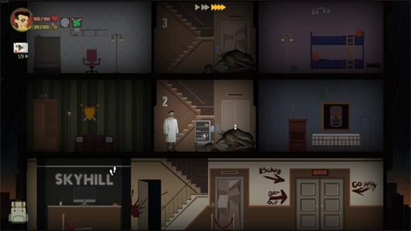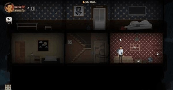 3、每层楼都有楼梯和两个房间三块区域,我们需要一一探索,找到资源和线索。