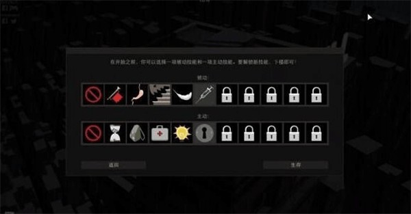 1、开局的时候能够选择不同的主动、被动技能,一般都同时具有双刃剑的效果,谨慎选择哦。