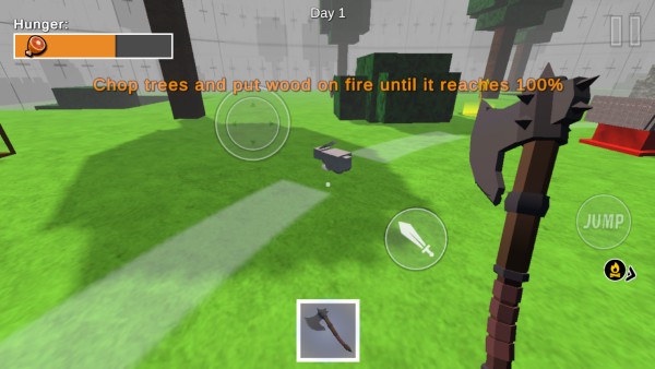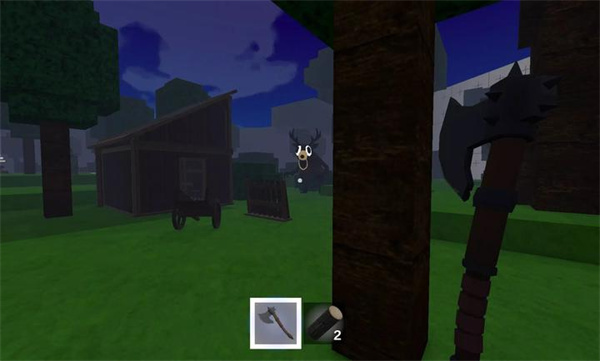 4、如下图,可以使用斧子来砍伐树木,还能够用来狩猎,多多积攒更多资源吧!