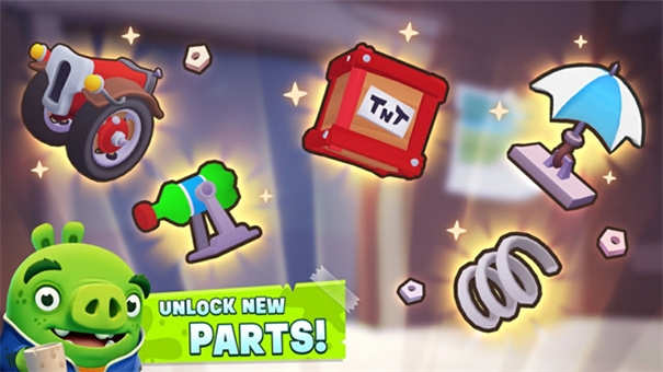捣蛋猪2以3D游戏引擎将原本2D的捣蛋猪游戏进行了全方位升级,多达40种零部件以及更贴近真实的物理引擎让玩家可以更好地发挥想象力打造“豪华”载具进行闯关,上百个关卡数量更是给予玩家更为丰富有趣的益智体验。
