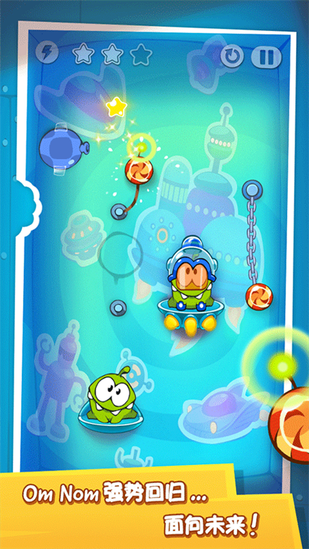 割绳子时光旅行是休闲类手游《割绳子》的续作版本,玩家将跟随可爱的小怪兽Om Nom乘坐时光机前往各个时代,为了品尝到美味可口的糖果而展开一系列头脑风暴的解谜旅程。在割绳子时光旅行中,玩家需要和割绳子前作一样通过割断绳子来投喂小怪兽Om Nom,全新设计的关卡根据不同的时代风情添加了更多独特的道具,合理运用道具机制可以更好的通过关卡。喜欢割绳子时光旅行的话,就快快下载看看吧!