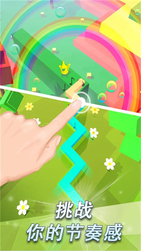 1、游戏没有什么剧情交代,开始之后我们要做的就是循着节奏点击。可以看到在场景中有一个类似小线的东东不断前行,玩家要做的就是在拐角处点击屏幕任何位置来让小线转向,至于转向是否正确就无需玩家操心了,你只需要保证小线不撞墙就好。