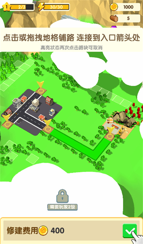 铺路玩法新颖上瘾,按照自己的规划来组建城市发展,卡通的游戏风格非常治愈,还有各种的场景地图,碎片化的时间也能够轻松游玩,通过关卡的任务,获得游戏的胜利,自由的挑战完成任务。