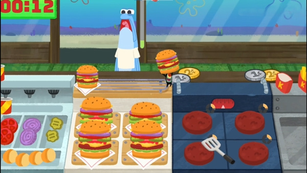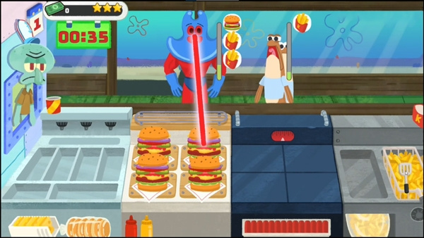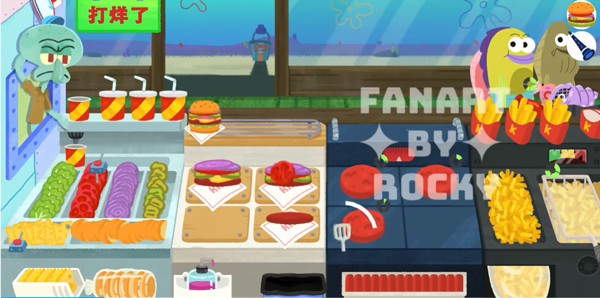 3.进行角色扮演的时候,可以和自己喜欢的海绵宝宝或是章鱼哥一起工作。