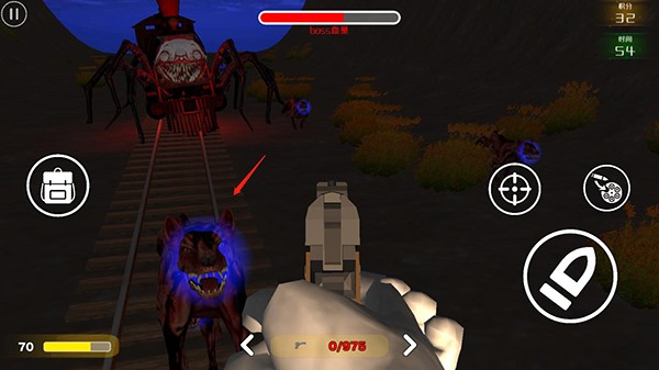 5、使用武器对准怪物火车,展开射击,击中后Boss血量就会减少;