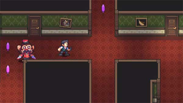 7、益智向右走到尽头乘坐电梯上二楼,收集所有散落的紫水晶,但是要注意会有猴子怪物追赶你,不止一只哦,你需要灵活的走位,抓住时机寻找藏身之处,躲避它们的追杀!