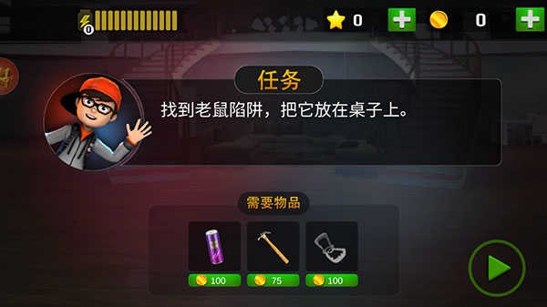 2、开始恶作剧任务,整蛊这个恐怖的老师,点击右下角的播放按钮,开始挑战。