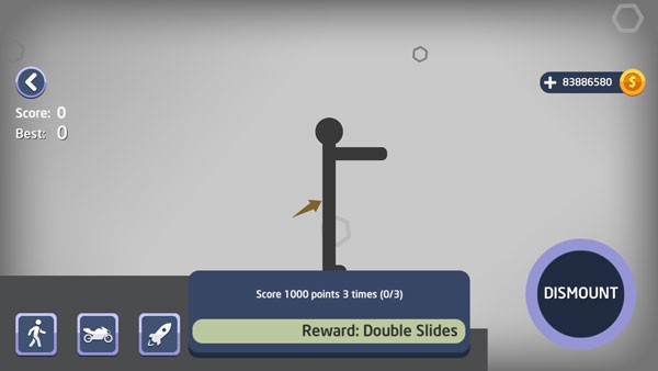 3、通过长按左下角DISMOUNT控制火柴人行动